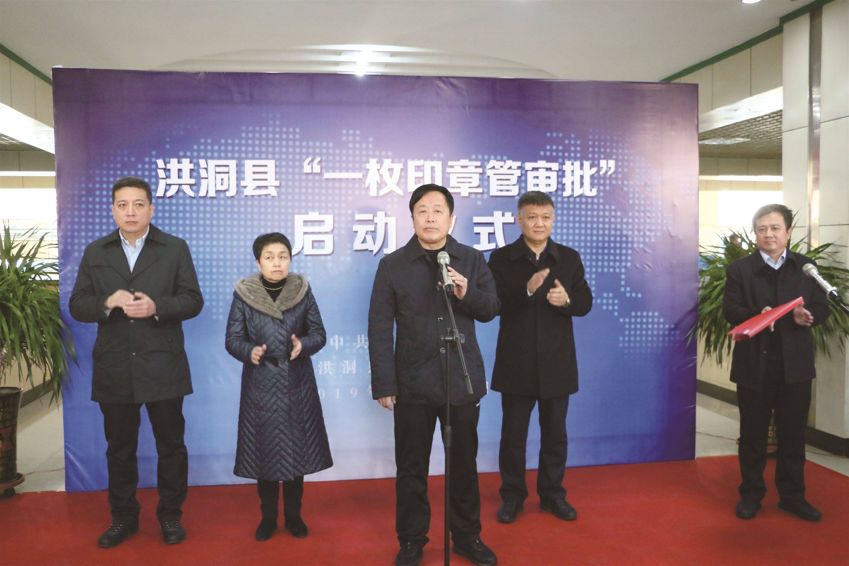 杨建军在讲话中指出,推进相对集中行政许可权改革,是省、市赋予我县的一项重大改革任务,是深化“放管服效”改革、转变政府职能、打造“六最”营商环境的重要抓手,更是推进我县企业投资创业快捷化、民生服务便利化、社会服务精细化、公共服务高效化、政府治理现代化的有力举措。各职能部门要强化“大局意识”,加强协调配合,切实加强对具体工作的业务指导,及时协调解决改革过程中的重大问题,形成工作合力。县行政审批服务管理局全体人员,要以本次启用仪式为起点,按照省、市和县委、县政府要求,主动对标一流,创新服务方式,完善制度体系,强化制度执行,形成一批彰显洪洞特色、体现洪洞优势的制度成果。要围绕市场主体诉求,顺应人民群众期盼,坚持以为企业和群众办好每一件事为原则,推动审批服务便民化、群众办事便利化、政府治理现代化,真正把改革成果转化为治理效能,不断开创“五大战略”新篇章、实现“保优夺魁”新胜利,为促进县域经济社会高质量转型发展、建设全面小康新洪洞而努力奋斗。