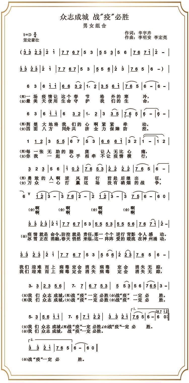 当“媳妇儿,见字如面”的信息刷爆网络时,国人为之动感。“国家召唤,我喊到”的英姿再现;疫情就是命令,你出征在抗疫一线,最了解你的是他,最牵挂你的是他,这个春天第一个最想见你的人也是他;等你,在家,用行动为你助战。口罩遮住的脸上,露着你坚毅的目光;无声的疑望,是你真切的惦念;脸上的勒痕,抒写着艰辛; 你的笑容,展现着无悔和坚定。同呼吸,共患难,是逆行的你们以平凡抒写着悲壮与担当;携手并进,驰援武汉,共克时艰,巾帼儿郎,你们撑起了民族的脊梁。当“为了谁”的施律再次响彻时,不知有多少人油然地举起了手臂,向你们敬了个不规范的军礼。等你,在家;等你,在花桥柳下;等你,在灯火珊阑处;等你,在黄昏后;……